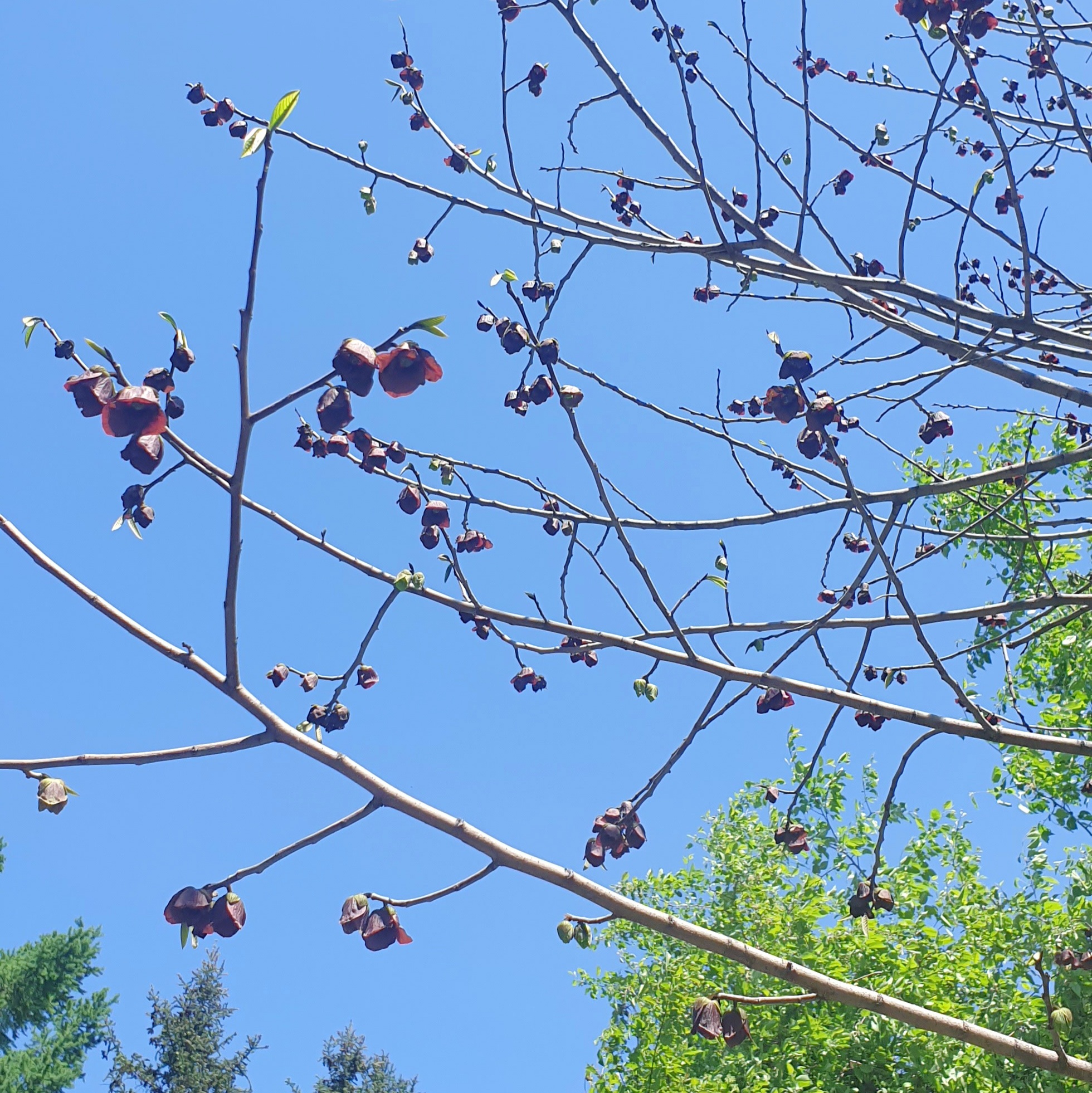 Азимина трехлопастная (лат. Asimina triloba L.) – двудольное цветковое растение, вид рода Азимина (Asimina) семейства Анноновые (Annonaceae). Это реликтовый североамериканский вид, представитель доледниковой флоры, сохранившийся со времен миоцена. Азимина трехлопастная представляет собой листопадный кустарник или дерево высотой 8-10 м с широкой пирамидальной кроной. Молоденькие побеги обладают опушением. Зеленые листья имеют продолговато-яйцевидную форму. Во время цветения, которое приходится на апрель-май, азимина трехлопостная привлекает внимание своими красивыми необычными цветками коричнево-пурпурного цвета. В природных условиях азимину опыляют падальные мухи и жуки-мертвоеды — ее цветы издают несильный, но очень неприятный запах, похожий на запах гнилого мяса.