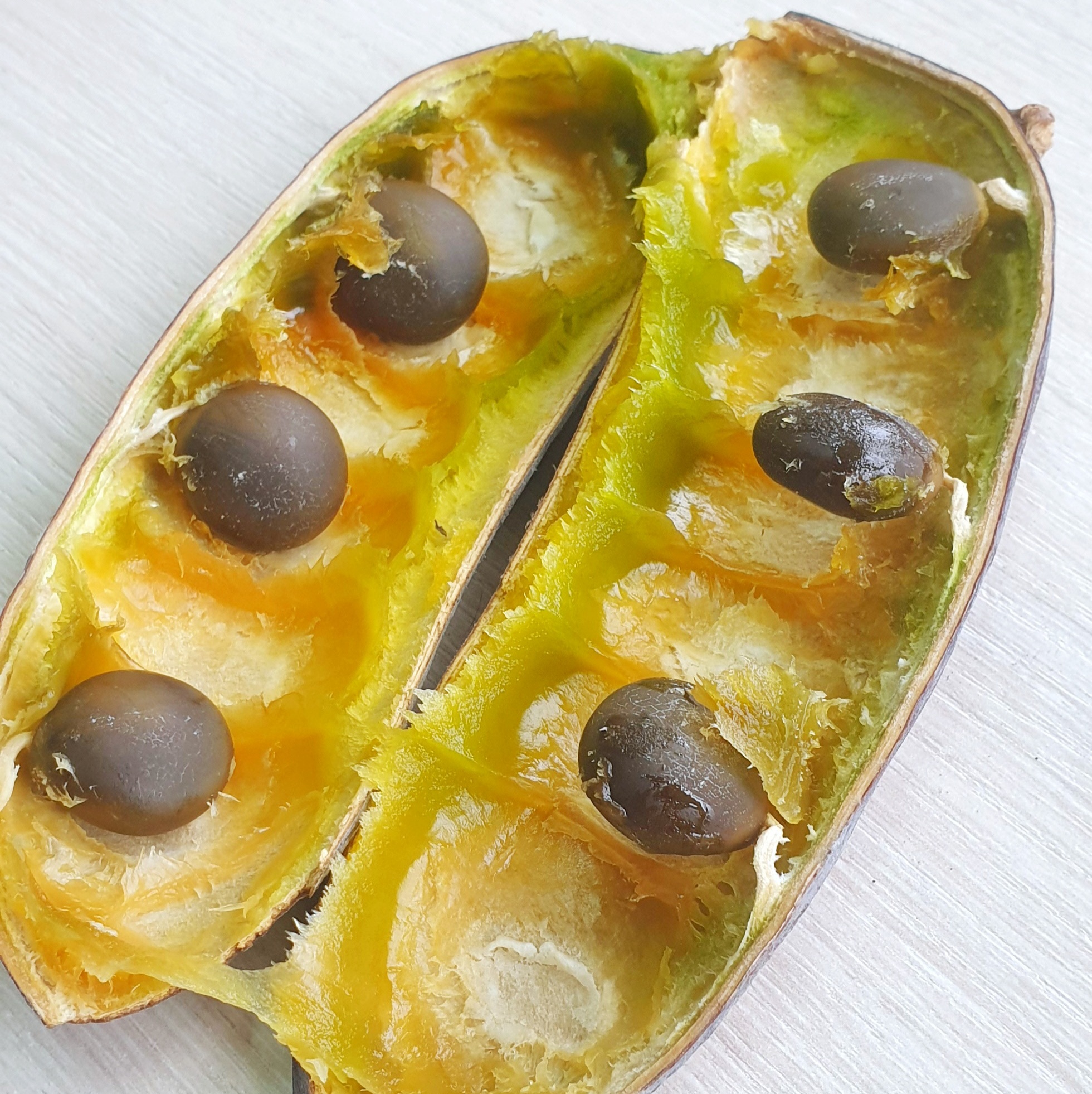 Во время цветения, которое происходит в конце мая – июне, небольшие цветки бундука источают приятный лимонный аромат. Созревают плоды осенью. Часть из них сохраняется на дереве до весны, а часть постепенно опадает. Плод бундука представляет собой боб длиной до 20 см с плотными кожистыми створками. Внутри него находятся округлые сплюснутые семена (до 6 шт.), окруженные зеленоватой, гелеобразной субстанцией с приятным ароматом. Гель обладает антибактериальными свойствами, хорошо мылится, но не пенится. Индейские племена использовали его в качестве натурального природного мыла. Отсюда пошло еще одно название растения – мыльное дерево. Это природное моющее средство можно поместить в стеклянную посуду и хранить в прохладном месте. Оно не теряет своих свойств даже в высушенном виде: достаточно развести в теплой воде, чтобы использовать его в качестве шампуня, жидкого мыла или моющего средства. В концентрированном виде может заменять клей или полирующую жидкость для мебели.