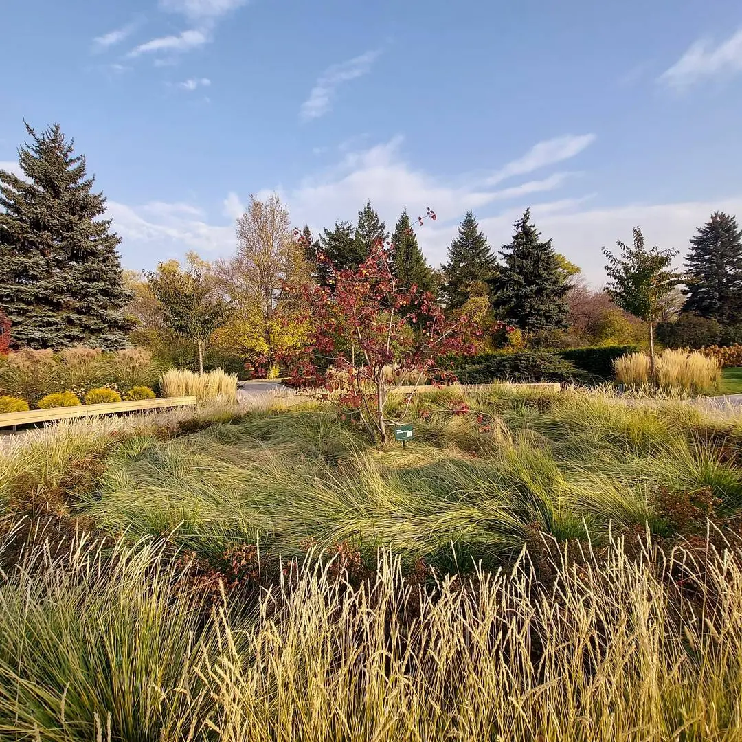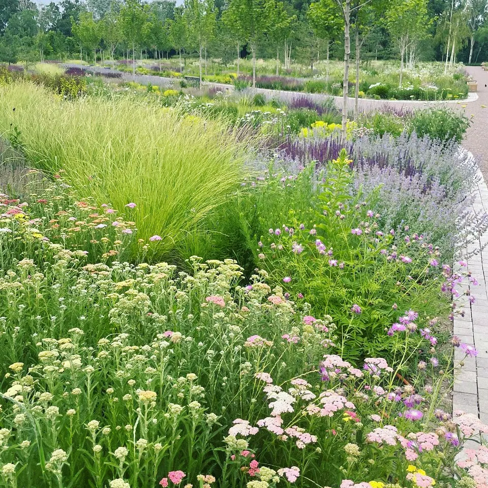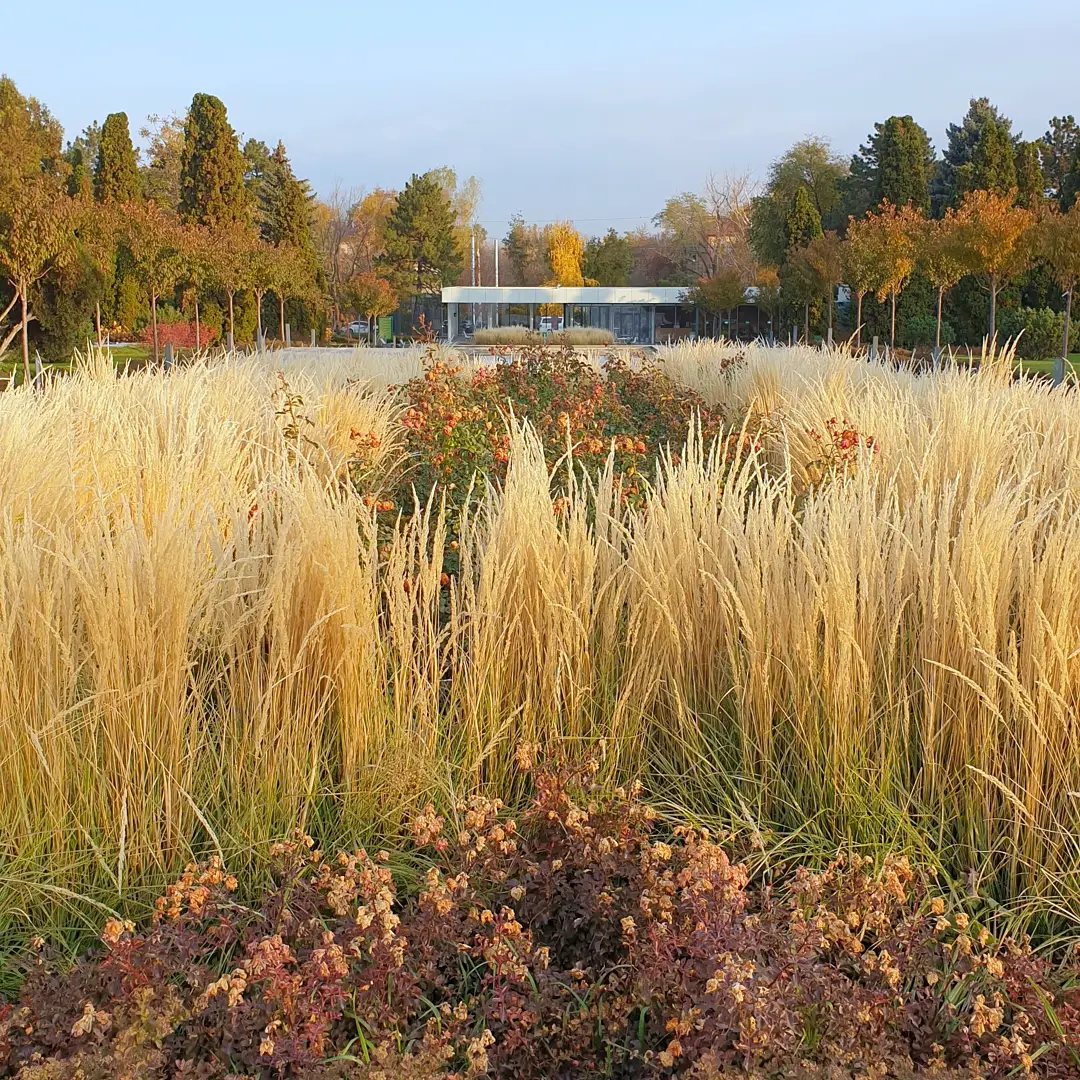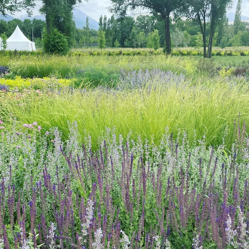 «17 000 злаков высажено в Северном партере. Здесь главная скрипка у Вейника Овердам (Calamagrostis x acutiflora Overdam), который растет на клумбах центральной аллеи вместе с ландшафтными розами. Также необыкновенна красива сизая Овсяница Мери (Festuca mairei).