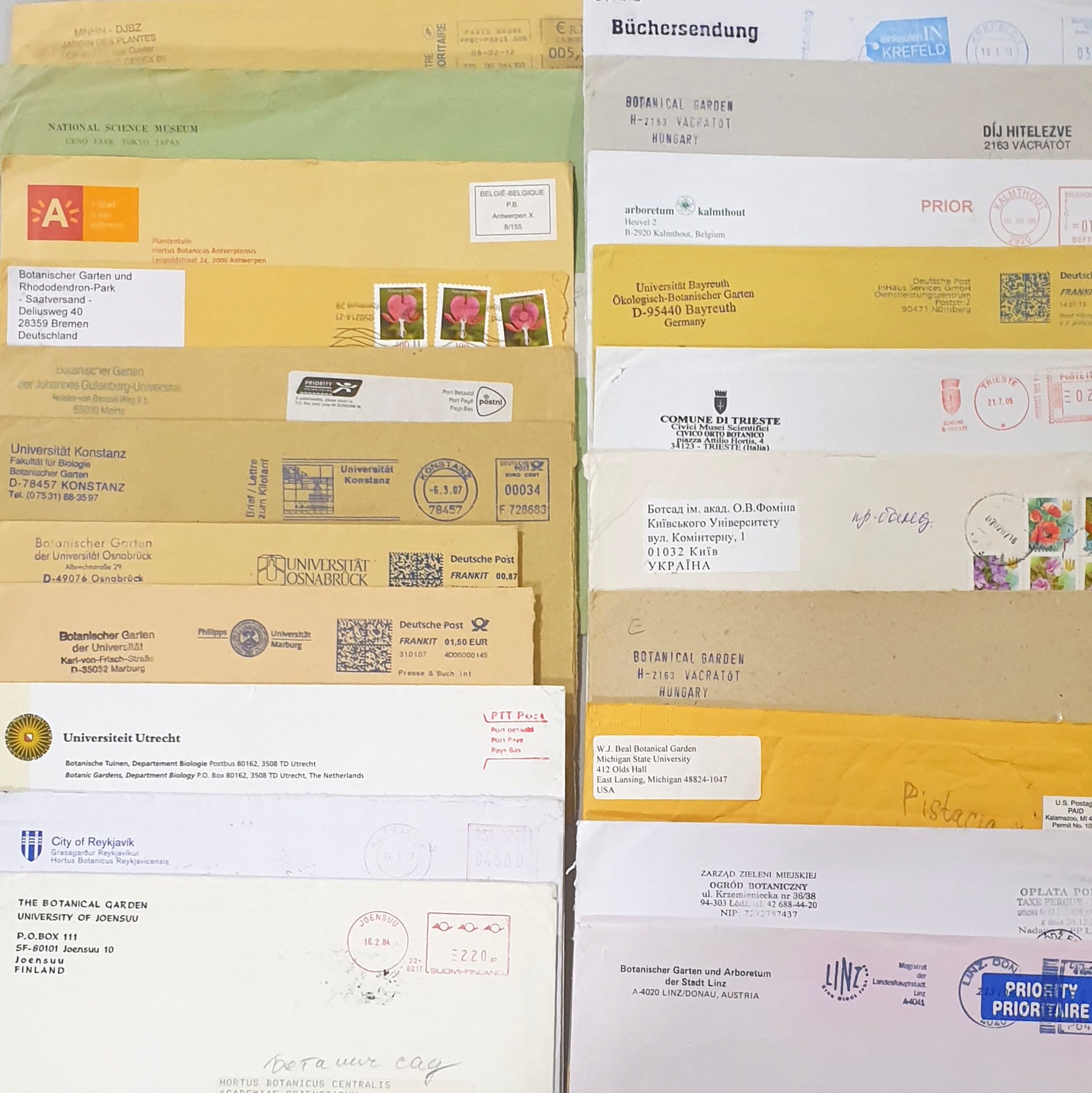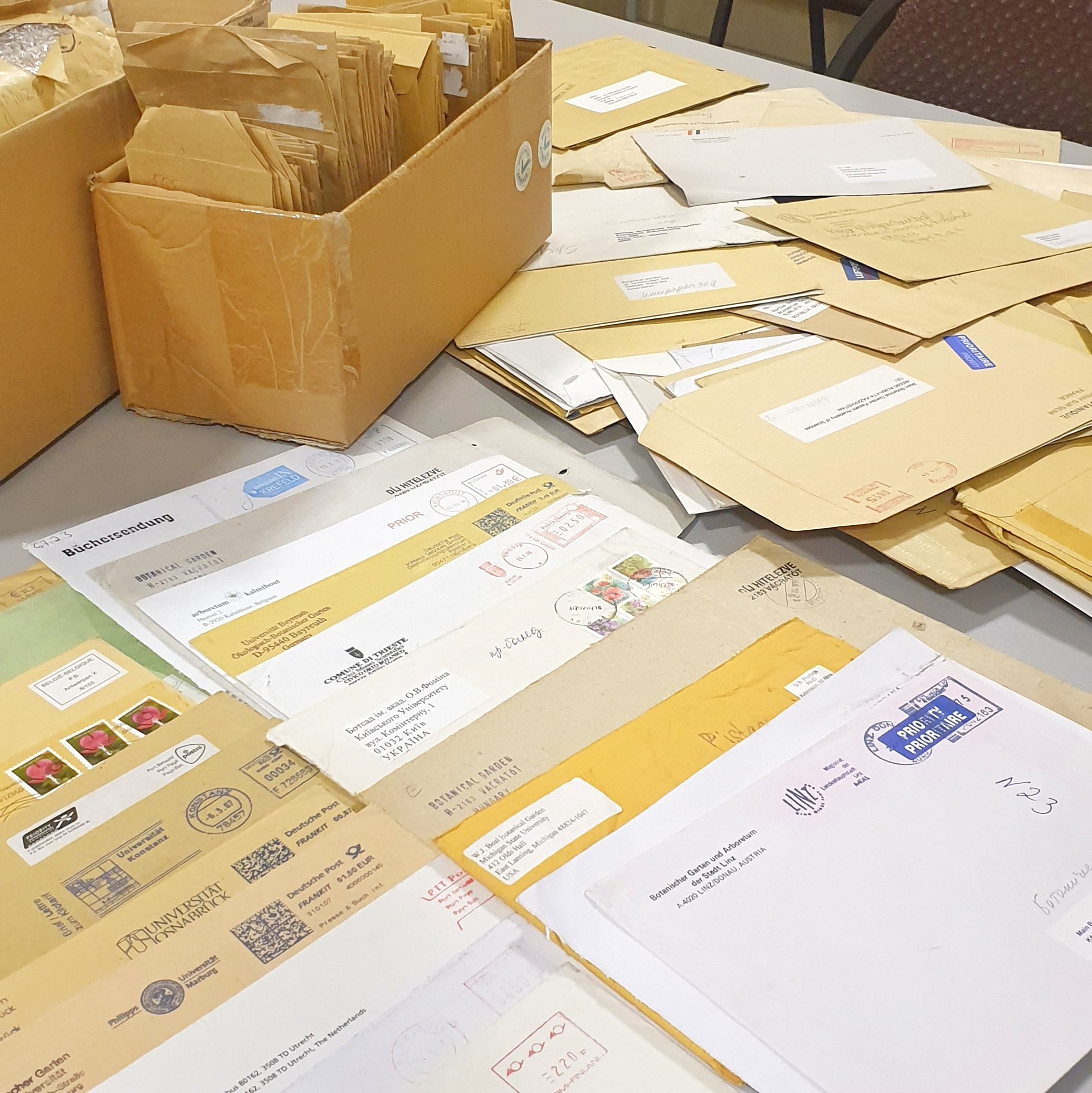 В 2021 году по делектусному обмену нами получено 316 образцов семян из 13 стран (Нидерланды, Израиль, Австралия, Сингапур, Германия, Чехия, Италия, Киргизия, Венгрия, Румыния, Бельгия, Италия, Россия); ГБС отправил 13 образцов семян в Россию, Чехию и по ботсадам Казахстана. Главный Ботанический сад активно сотрудничает со многими ботаническими садами мира и каждый год их количество увеличивается.