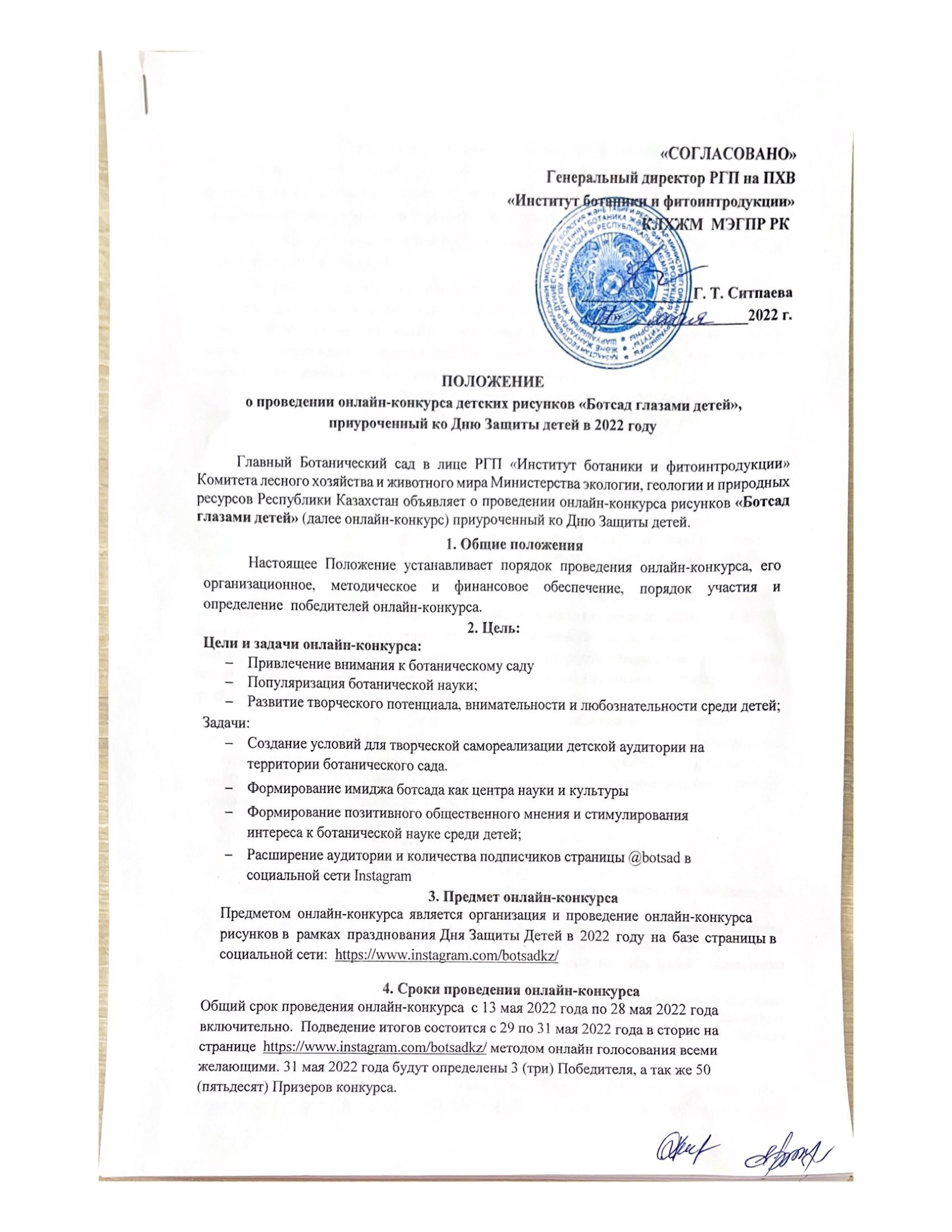 о проведении онлайн-конкурса детских рисунков «Ботсад глазами детей», приуроченный ко Дню Защиты детей в 2022 году