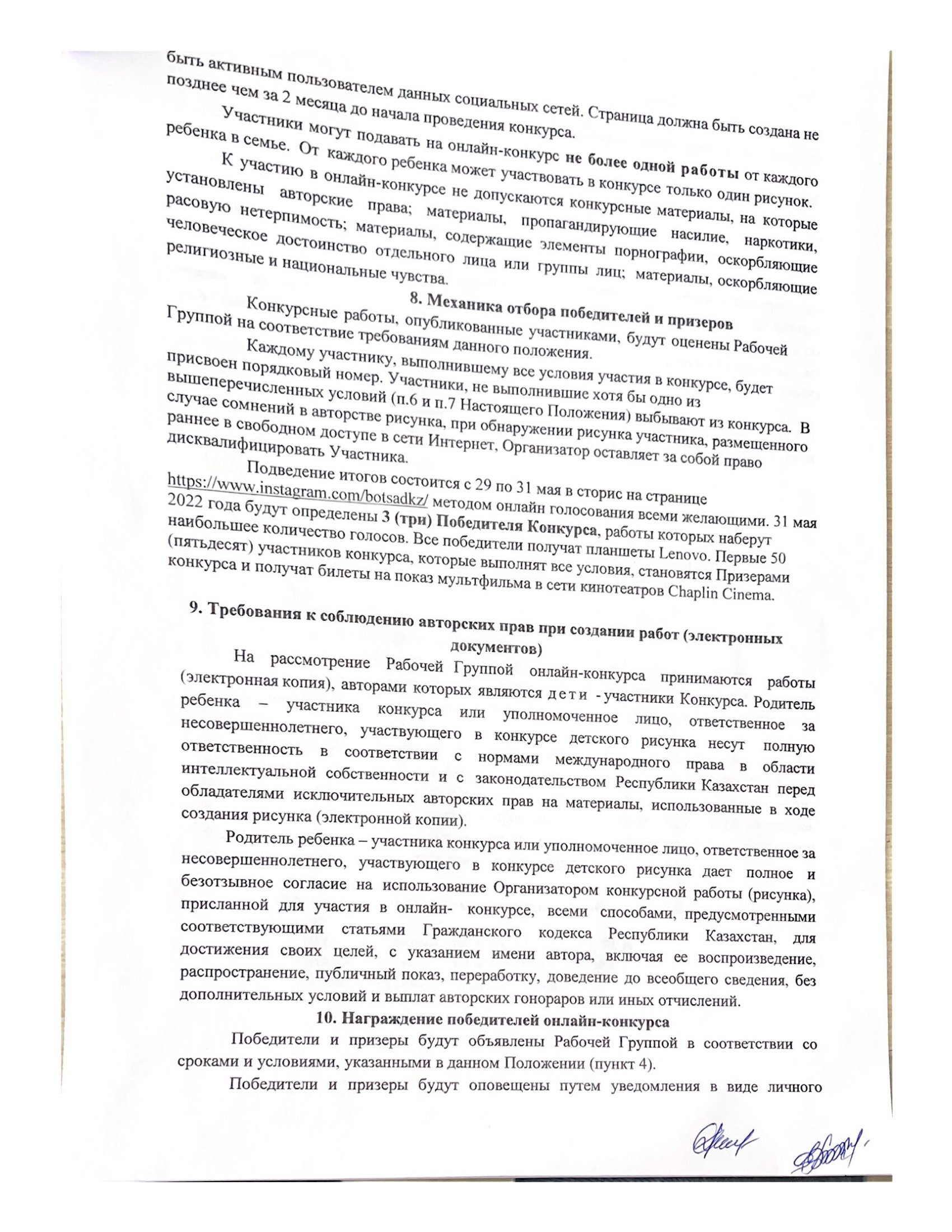 Работы принимаются с 13 мая 2022 года до 28 мая 2022 года. Подведение итогов состоится с 29 по 31 мая в сторис нашего аккаунта методом онлайн голосования всеми желающими. 31 мая будут определены три победителя, работы которых наберут наибольшее количество голосов. Ве победители получат ценные призы . Призовой фонд: три планшета Lenovo и 50 билетов на посещение мультфильма в кинотеатре Chaplin Cinema.