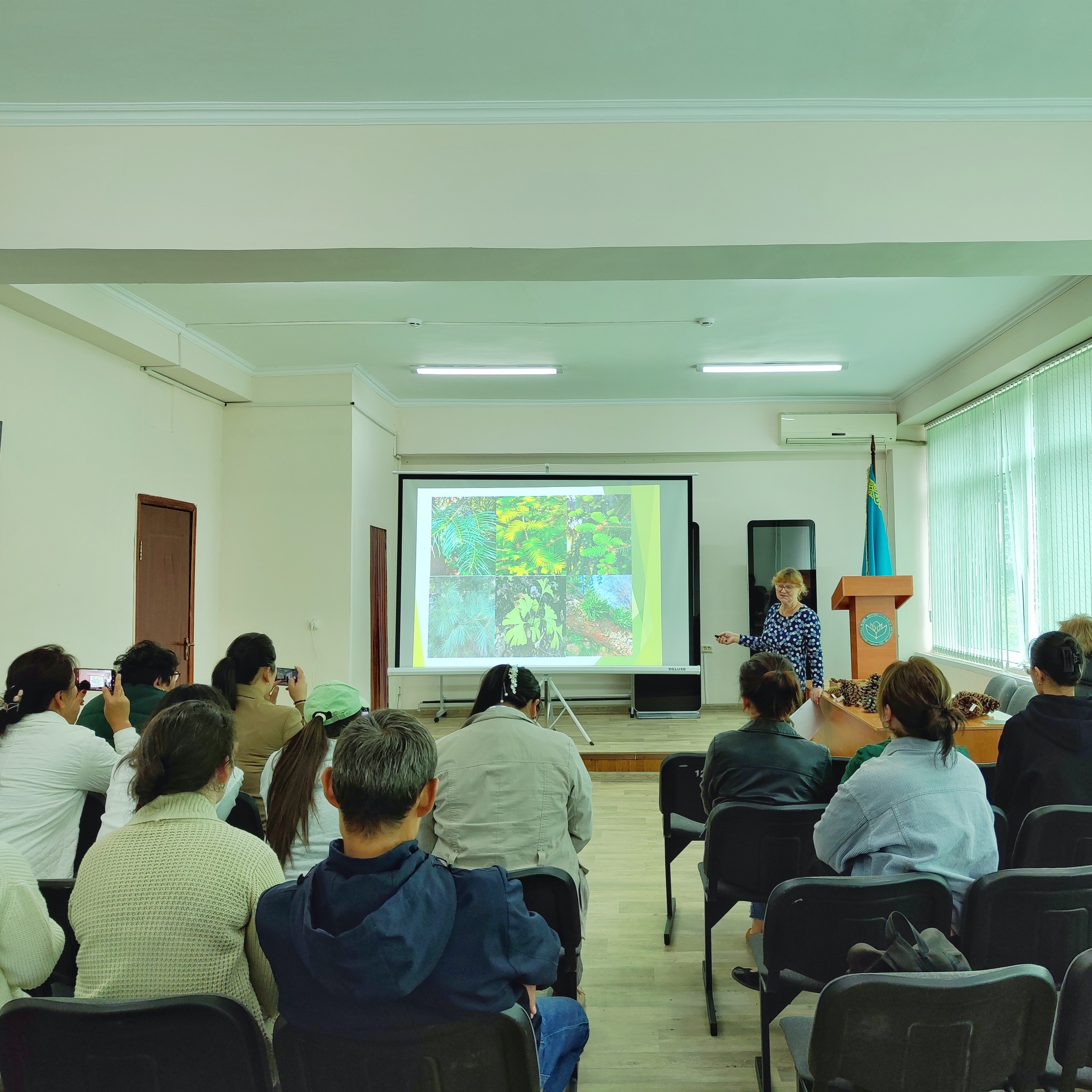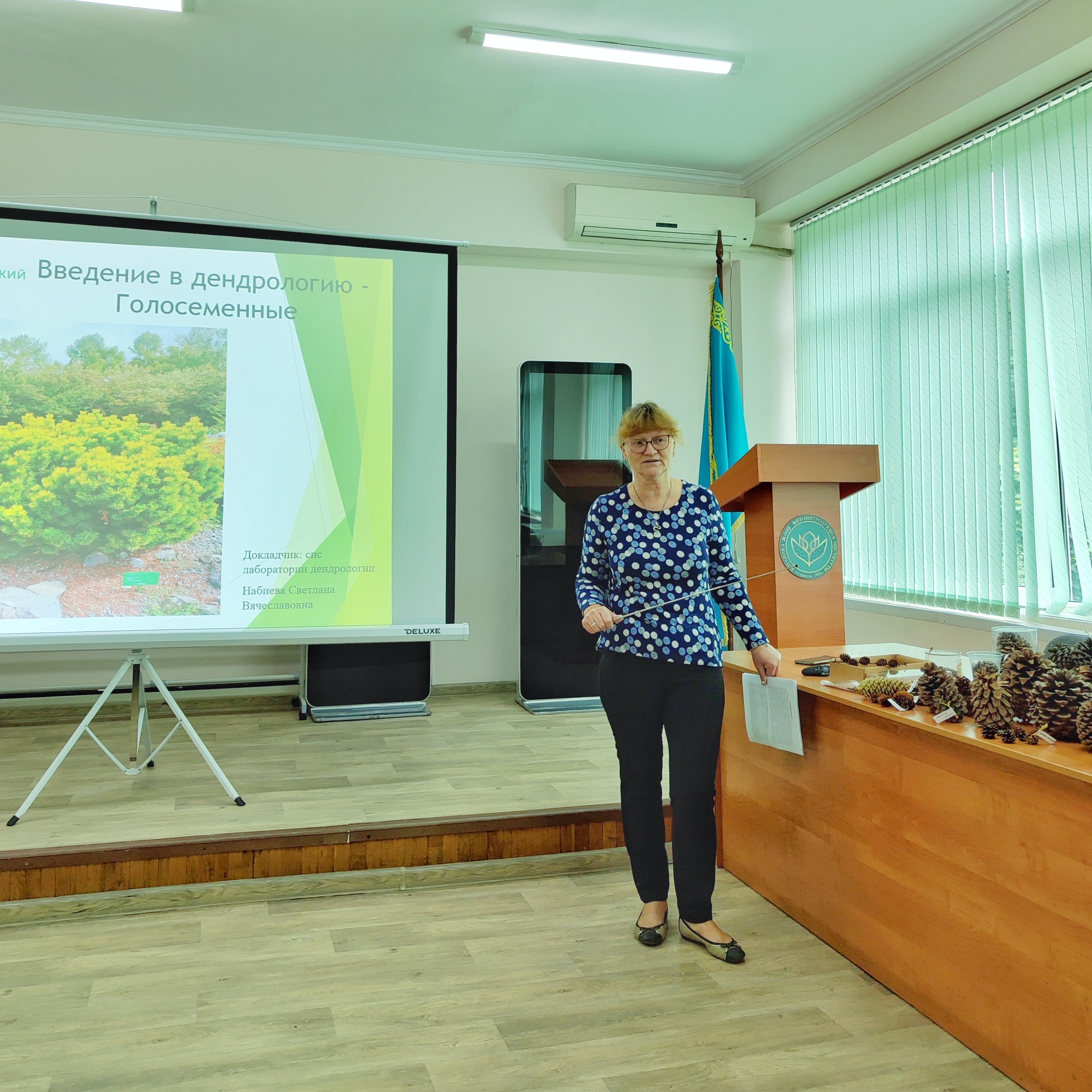 14 сентября 2023 года состоялась лекция старшего научного сотрудника лаборатории дендрологии Набиевой С.В. на тему: «Введение в дендрологию – Голосеменные». Светлана Вячеславовна рассказала о науке дендрологии, голосеменных растениях, коллекции хвойных в ботсаду, куратором которой она является, а также продемонстрировала в презентации цветение тисса, ели, сосны, тсуги, псведотсуги, пихты и т.д. После лекции молодые ученые смогли задать вопросы лектору и рассмотреть коллекцию шишек и семян лаборатории дендрологии.