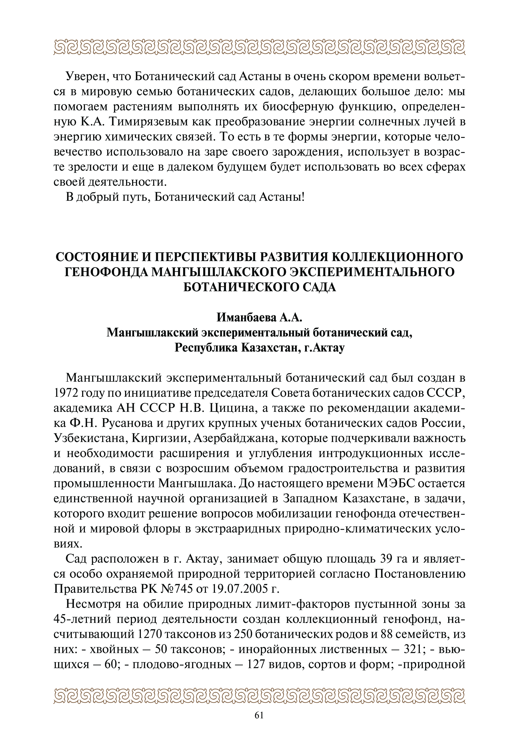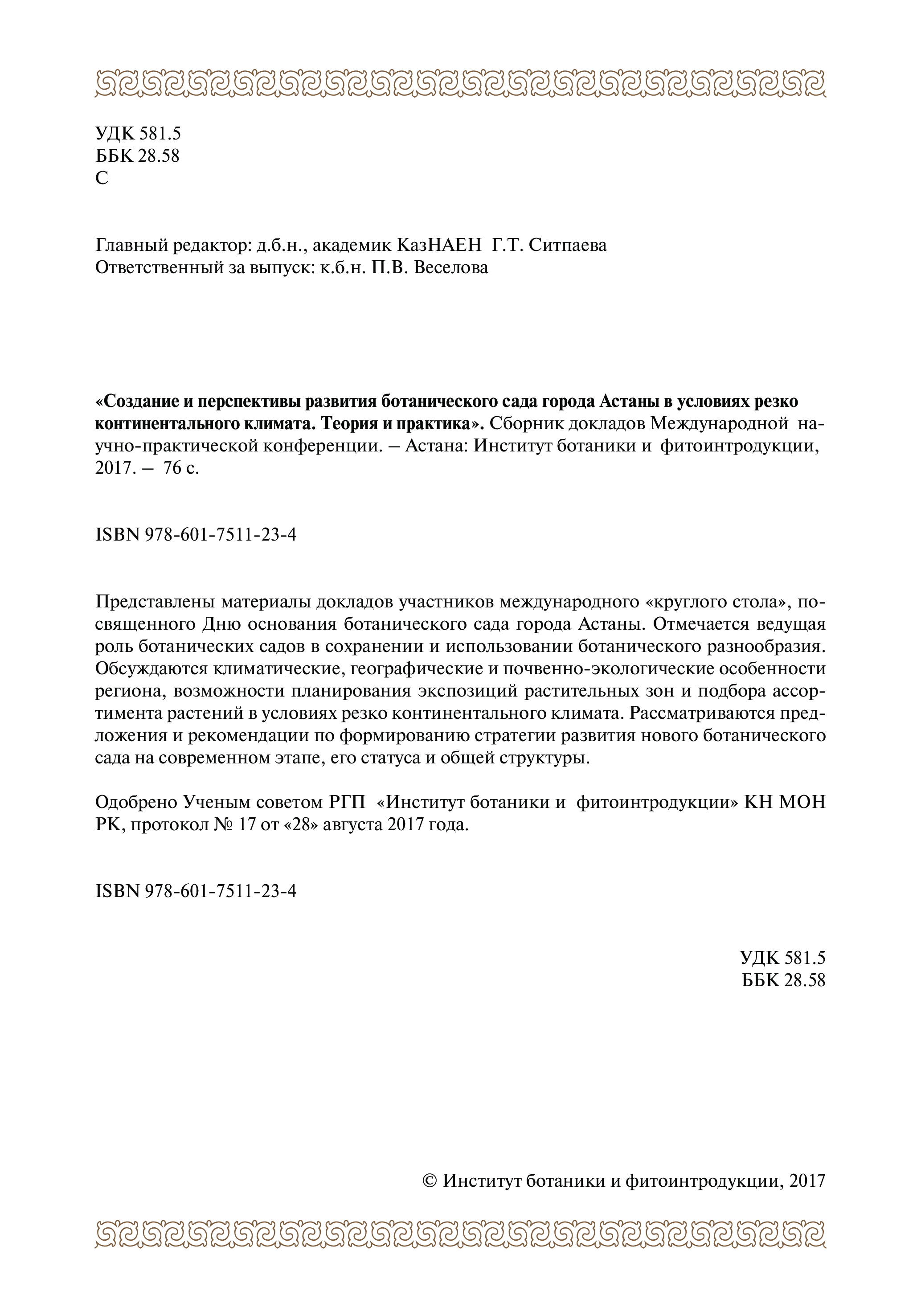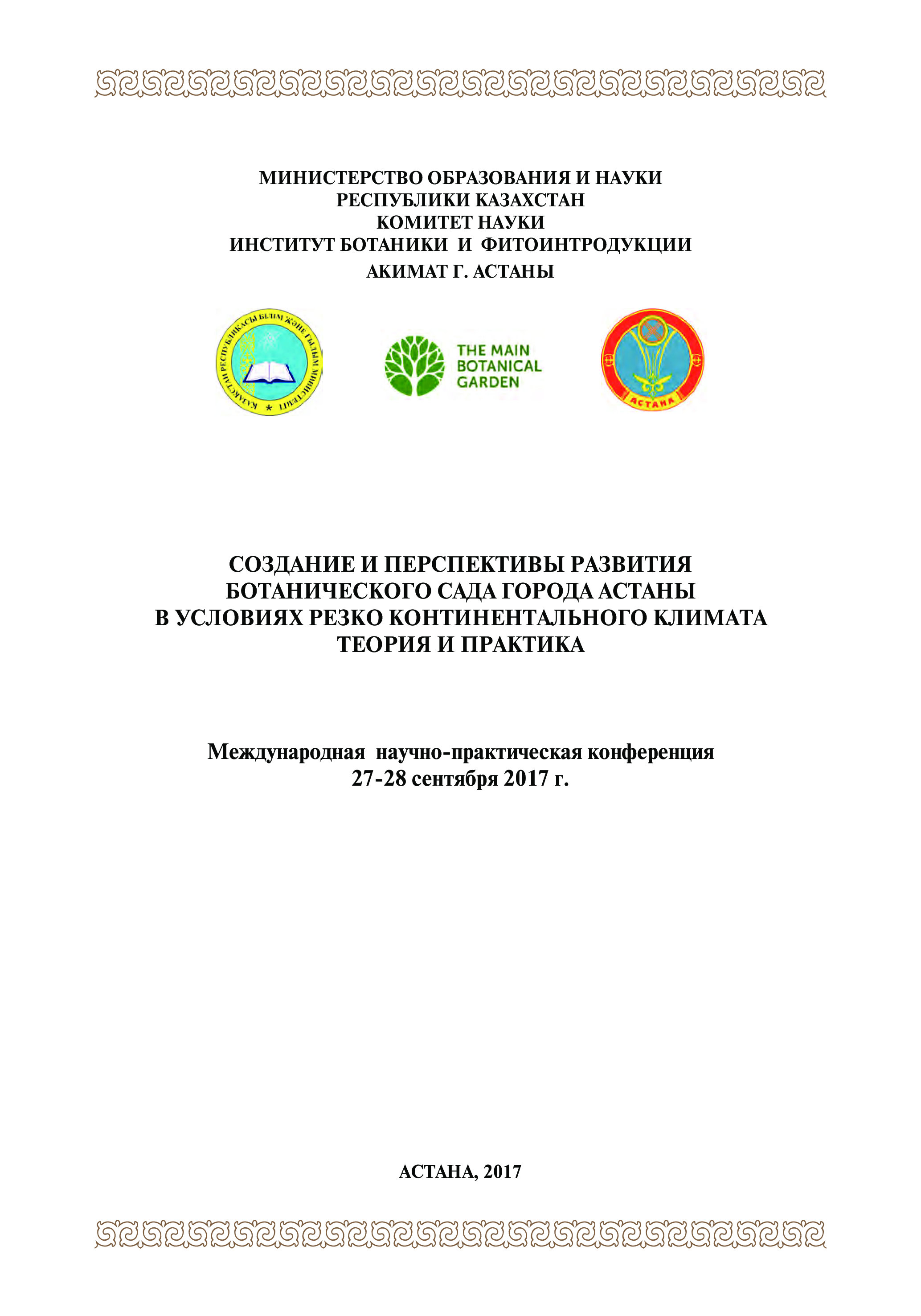 Международная научно практическая конференция 27-28 сентября 2017 г. СОЗДАНИЕ И ПЕРСПЕКТИВЫ РАЗВИТИЯ БОТАНИЧЕСКОГО САДА ГОРОДА АСТАНЫ В УСЛОВИЯХ РЕЗКО КОНТИНЕНТАЛЬНОГО КЛИМАТА ТЕОРИЯ И ПРАКТИКА, Астана 2017