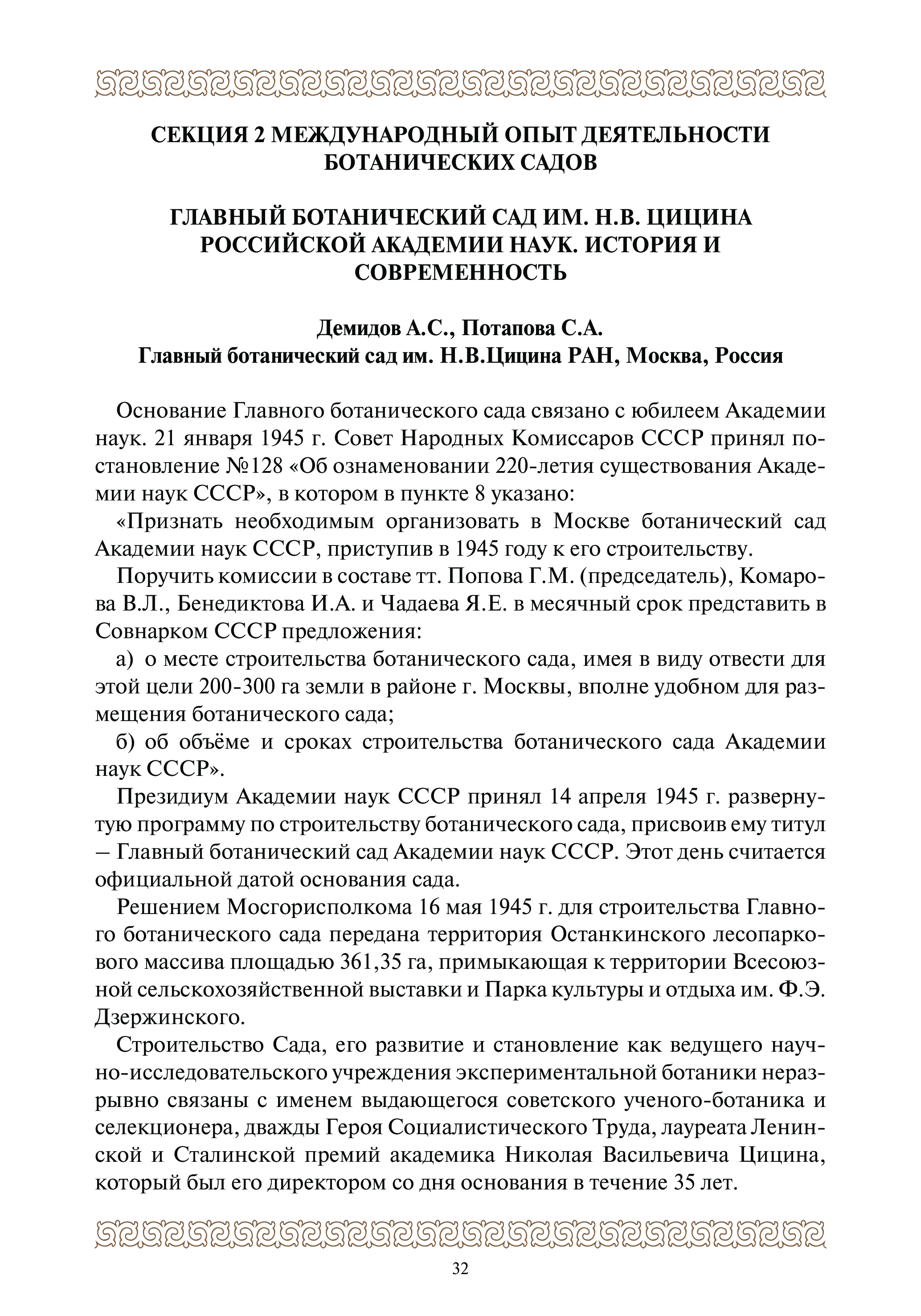 «Институт ботаники и фитоинтродукции» организован в 1932 г.