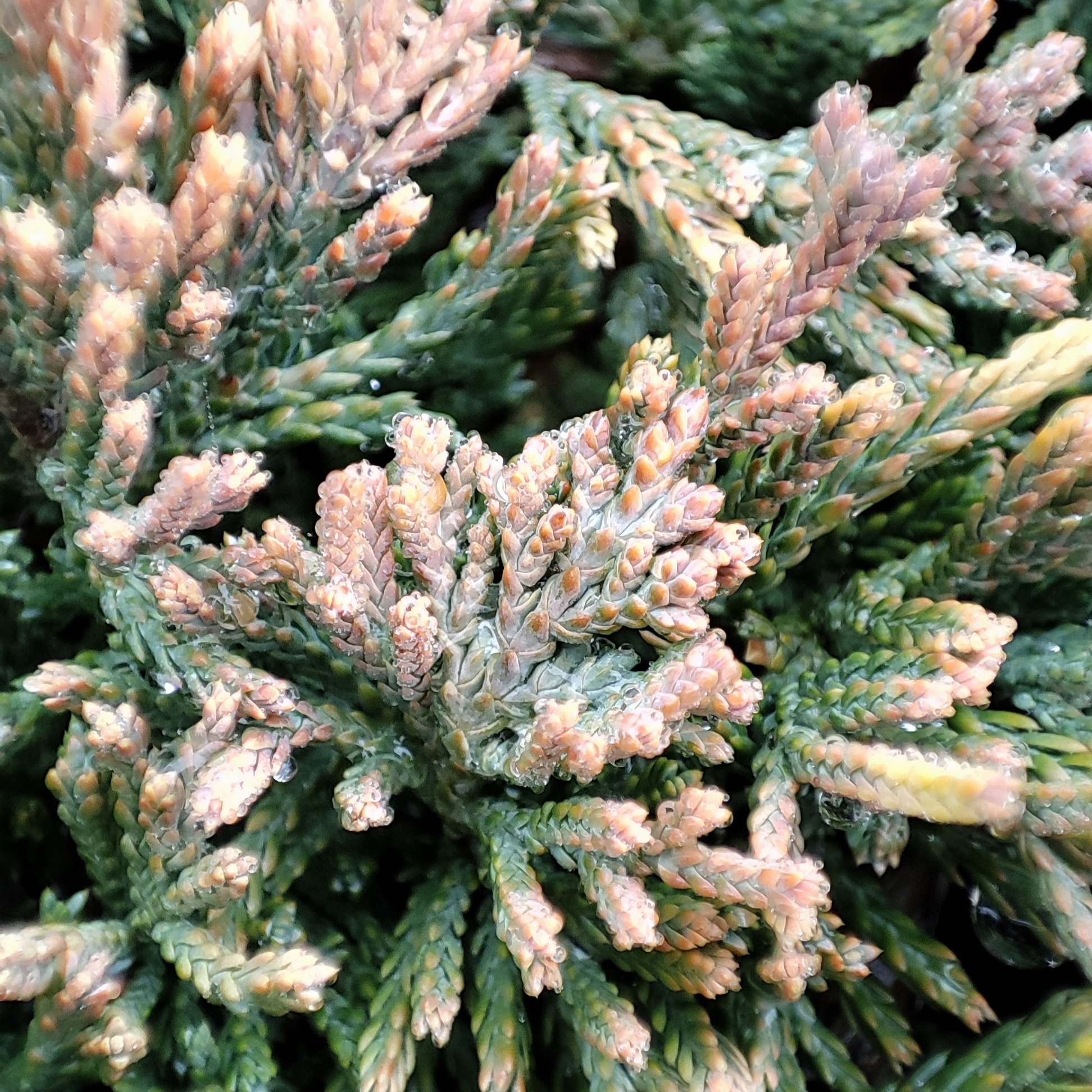 Можжевельник горизонтальный ‘Golden Carpet’ (лат. Juniperus horizontalis ‘Golden Carpet’) – сорт вида Можжевельник горизонтальный (Juniperus horizontalis), рода Можжевельник (Juniperus), семейства Кипарисовые (Cupressaceae). Название сорта переводится как «золотой ковер», что очень точно отражает внешний вид растения. Высота растения достигает всего 10-15 см, а диаметр до полутора метров. Побеги длинные, упругие, крепкие, обладающие способностью укореняться. Растет этот сорт медленно по 10 см в год. Имеет мелкую чешуйчатую хвою золотистого цвета. Сверху цвет у хвои золотисто-желтый, а снизу — желто-зеленый. Побеги выглядят очень эффектно, покрывая почву плотным ковром. Там, где имеется склон, бордюр, образуется ниспадающая ветвь. На таком можжевельнике плоды появляются довольно редко. Они представляют собой шишкоягоды бело-голубого окраса маленького размера. Можжевельник горизонтальный имеет отличную функцию: не пропускать рост сорняка под своей кроной. Морозоустойчивый и засухоустойчивый, выдерживает сильные ветра, устойчив к атмосферным загрязнениям. Отлично подойдет для украшения альпинария, рокария, хвойных клумб, послужит ярким украшением для любой композиции в саду.