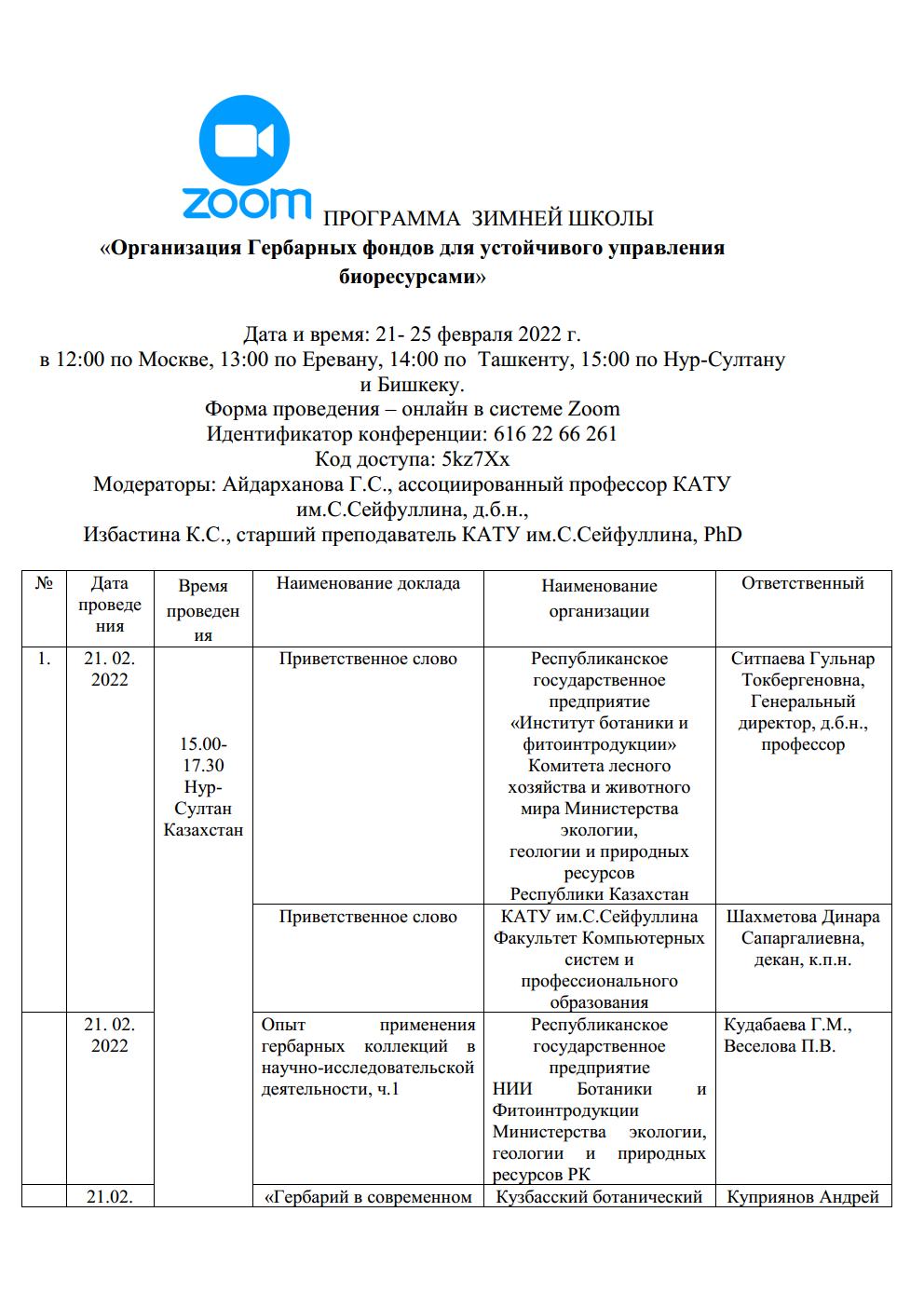 Целью Международной Зимней школы-2022 является анализ современного состояния Гербариев в учреждениях Казахстана и соседних республик для научных, образовательных, производственных разработок.