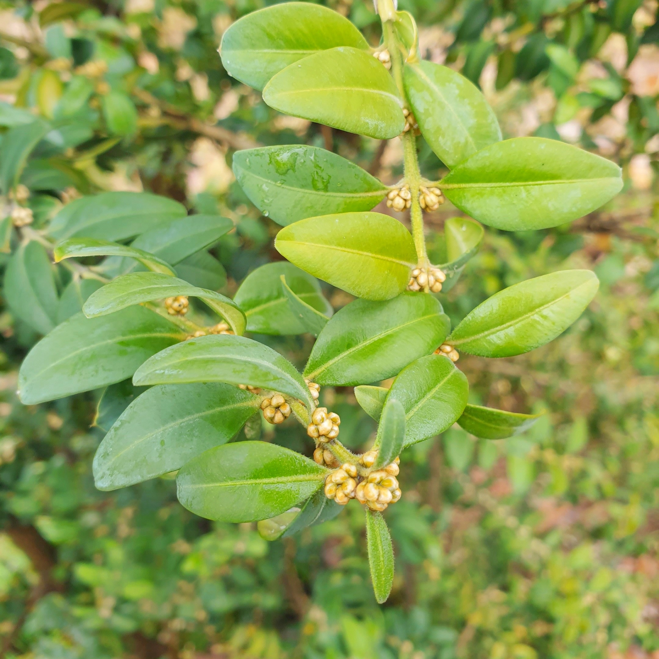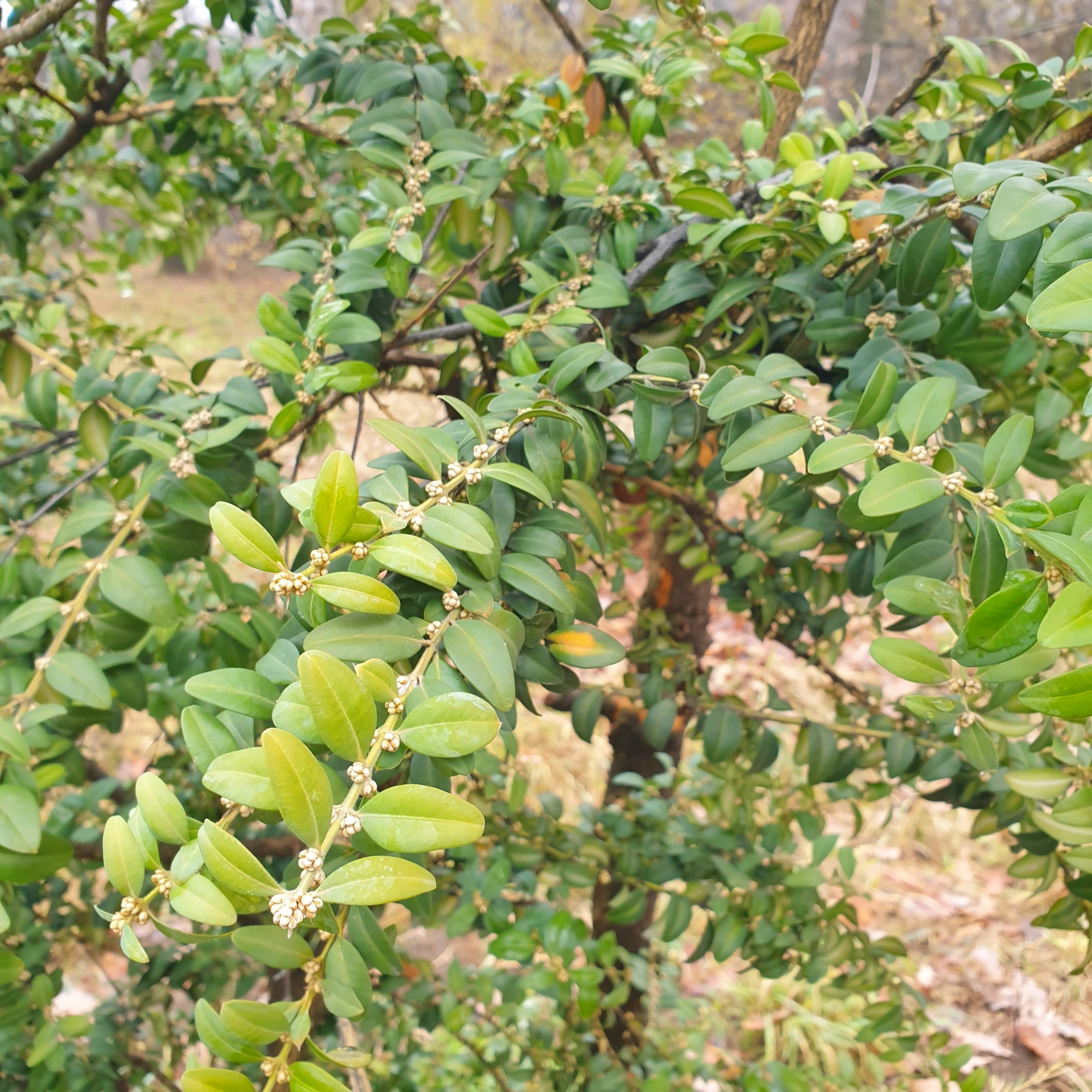 Самшит вечнозеленый (лат. Búxus sempervírens) — древесное растение, вид рода Самшит семейства Самшитовые (лат. Buxáceae). Родовое название происходит от греч. buxus – плотный, название вида от лат. sempervirens – вечнозеленый. Самшит вечнозеленый — это дерево или кустарник высотой до 15 м. Побеги прямые, торчащие, четырехгранные, зеленые, густо покрыты листьями. Листочки супротивно расположенные, кожистые, цельнокрайние имеют практически круглую либо эллиптическую форму. Душистые, маленькие, однополые цветочки входят в состав небольших соцветий. Плод самшита представляет собой трехгнездую коробочку, которая после того как созреет, растрескивается, а блестящие черные семена при этом разлетаются в разные стороны. Продолжительность жизни самшита составляет 400-500 лет. Все части растения и особенно листья ядовиты.