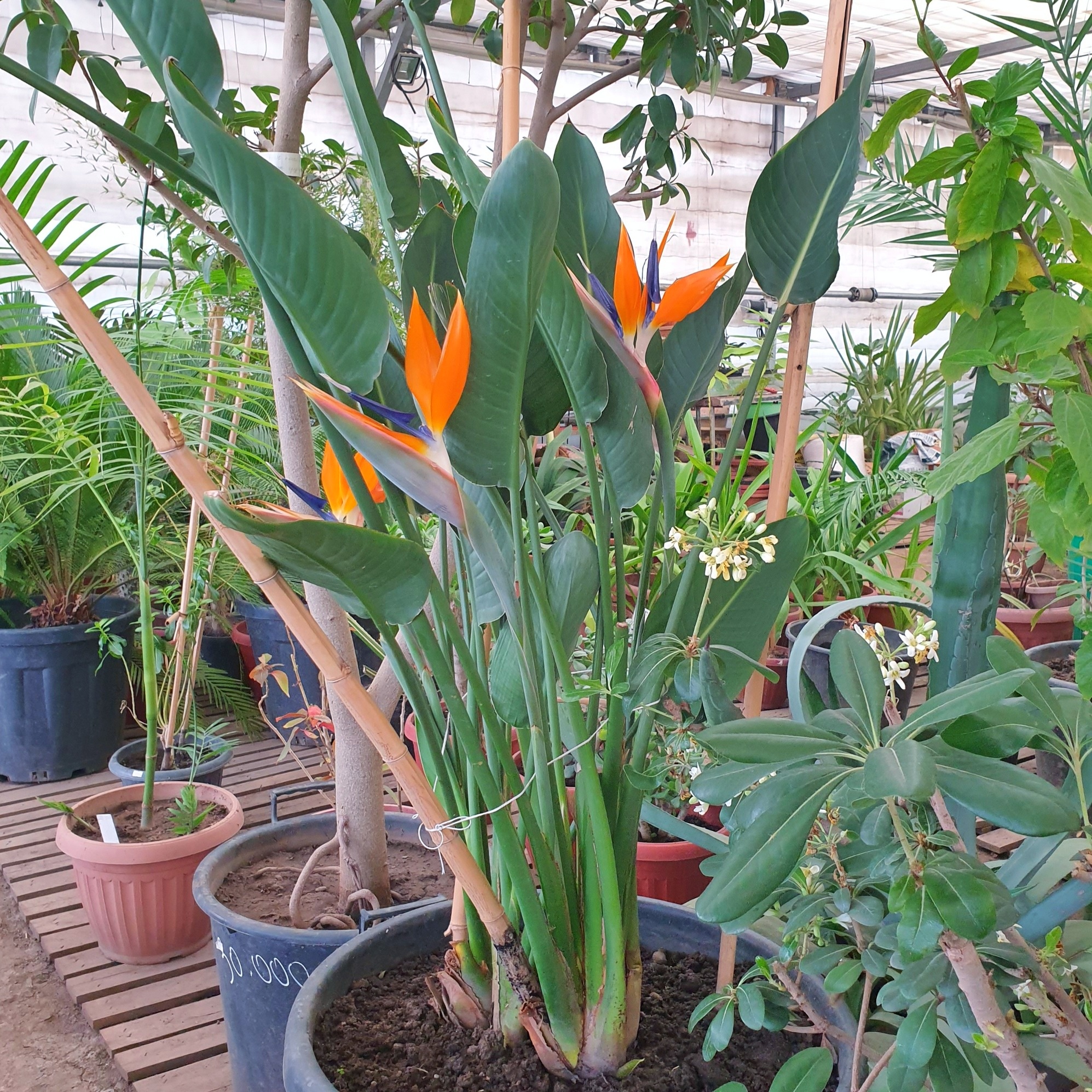 В коллекции нашего ботсада выращивается три вида стрелиции: Стрелиция белая, Стрелиция Николая и Стрелиция королевская (на фото). Первые два вида были получены в 1969 году из ГБС г.Москва, а Стрелиция королевская из Ботанического сада г. Сухуми.