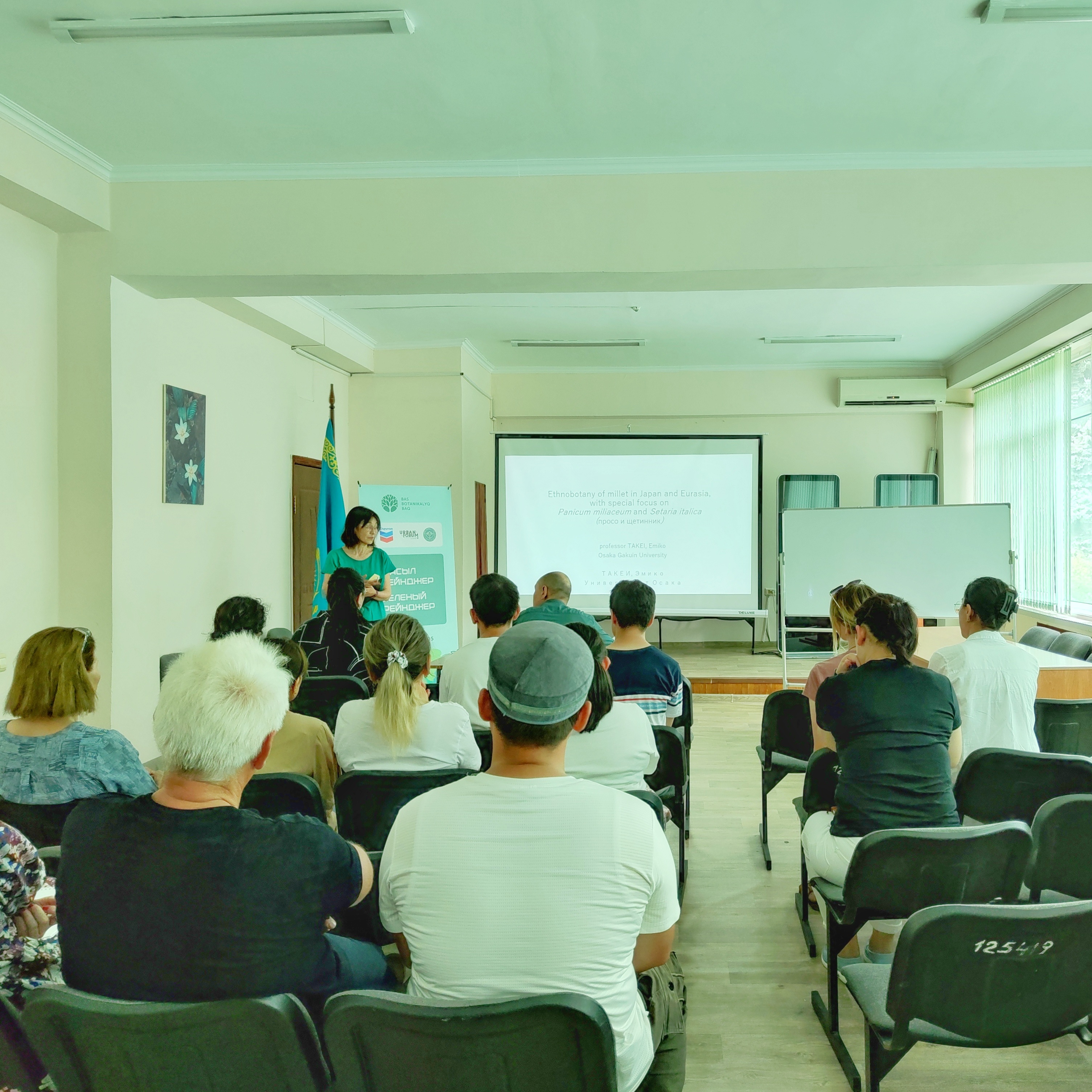 Во время нынешней встречи между Институтом ботаники и фитоинтродукции и Университетом Осака Гакуин был подписан меморандум о взаимном сотрудничестве. После подписания меморандума профессор Эмико Такеи выступила перед нашими научными сотрудниками с лекцией на тему: «Этноботанические исследования проса в Японии и Центральной Азии Panicum millet L и Settaria italica».